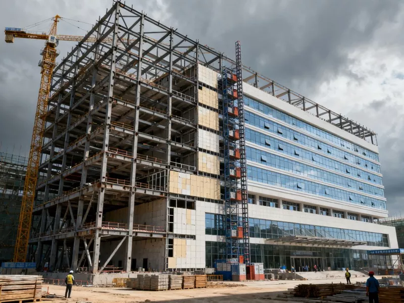 הויך-העכערונג פּריפאַבריקייטיד מעטאַל שפּיטאָל בנינים בכלל אָפּשיקן צו שפּיטאָל בנינים מיט מער ווי 10 פלאָרז. זייער ראָמען זענען קאַמפּאָוזד פון שטאָל בימז און שטאָל שפאלטן, וואָס זענען פארבונדן דורך באָלץ אָדער וועלדינג. דער הויפּט מאַטעריאַל פון הויך-העכערונג מעטאַל שפּיטאָל בנינים איז שטאָל. שטאָל סטרוקטור בנינים האָבן די קעראַקטעריסטיקס פון זייַענדיק פעסט און סטאַביל, שנעל ינסטאַלירונג, ענערגיע קאַנסערוויישאַן און ינווייראַנמענאַל שוץ, אאז"ו ו. די הויפּט ראַם און אנדערע קאַמפּאָונאַנץ פון די שפּיטאָל זענען געשאפן און פּראַסעסט אין דער פאַבריק. נאָך פּראַסעסינג, זיי קענען זיין טראַנספּאָרטאַד צו די קאַנסטראַקשאַן פּלאַץ פֿאַר ינסטאַלירונג. די פאַרשידן טיילן זענען פארבונדן מיט באָלץ, און עטלעכע נאָודז דאַרפֿן צו זיין וועלדעד אויף פּלאַץ. דעם שפּיטאָל בנין איז טיפּיקלי געווענדט אין גרויס אַלגעמיינע האָספּיטאַלס, ינפּאַטיענט בנינים, פאָרשונג בנינים, עטק.