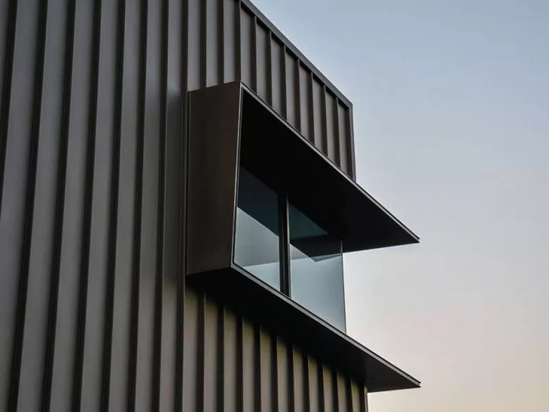 אַמאָל די שטאָל ראַם איז גאַנץ, די רופינג סיסטעם איז אינסטאַלירן, טיפּיקלי קאַנסיסטינג פון ינסאַלייטיד מעטאַל פּאַנאַלז אָדער איין-פּלי מעמבראַנע מאַטעריאַלס. יקסטיריער ווענט, אויב אַרייַנגערעכנט אין די פּלאַן, זענען אויך אינסטאַלירן מיט מעטאַל פּאַנאַלז, ציגל אָדער אנדערע קלאַדדינג מאַטעריאַלס.