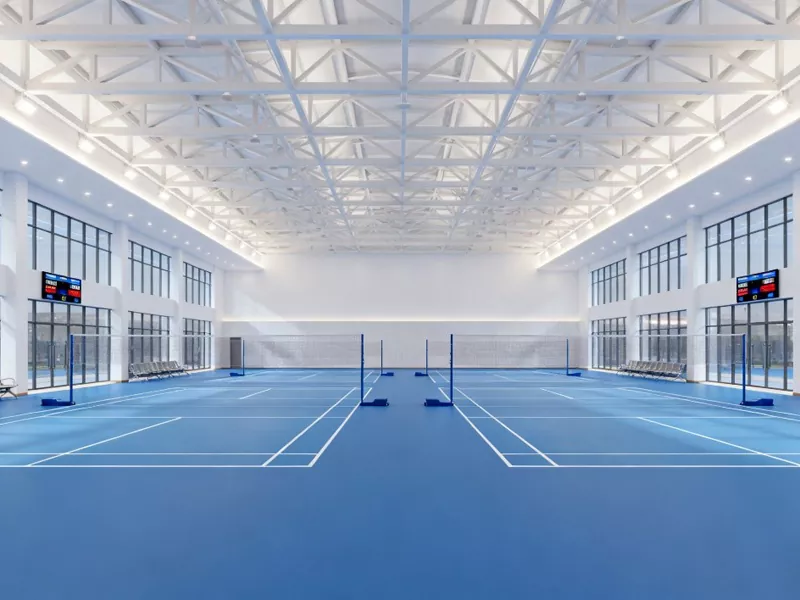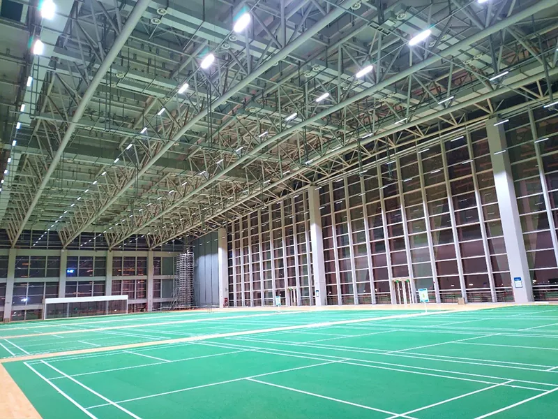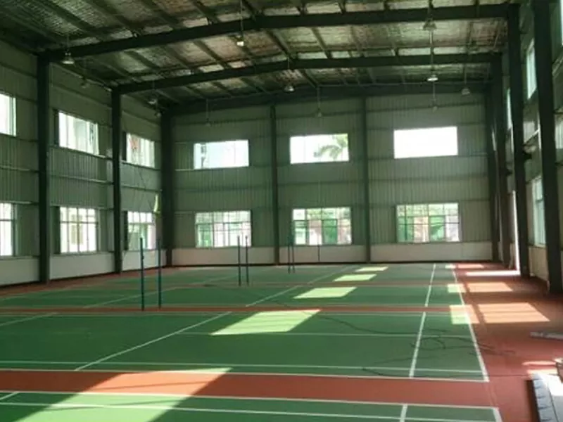 אונטער דער אַנטוויקלונג פון מאָדערן ספּאָרט בנינים, שטאָל סטרוקטור באַדמינטאָן זאַל איז ביסלעכווייַז ווערן די בילכער סטראַקטשעראַל פאָרעם אין די קאַנסטראַקשאַן פון באַדמינטאָן ווענוז. די הויפּט ראַם קאַמפּאָוזד פון שטאָל בימז און שטאָל שפאלטן נעמט אין חשבון סטראַקטשעראַל שטאַרקייַט, עסטעטיש ווירקונג און עקאָנאָמיש פאָרשטעלונג, דעמאַנסטרייטינג די סטאַנדאַרדס פון פאַכמאַן ספּאָרט ווענוז. ווי אַ פֿאַרמאַכט אָרט, אַ באַדמינטאָן זאַל דאַרף האָבן אַ גוט ווענטאַליישאַן סיסטעם און טערמאַל ינסאַליישאַן ווירקונג. א שטאָל-סטראַקטשערד באַדמינטאָן זאַל קענען נוצן מער ינווייראַנמענאַלי פרייַנדלעך און טערמאַל ינסאַליישאַן וואַנט מאַטעריאַלס, און זונ - פּאַנאַלז קענען זיין אינסטאַלירן אויף די דאַך צו דזשענערייט עלעקטרע פֿאַר די ווענאַליישאַן סיסטעם.
